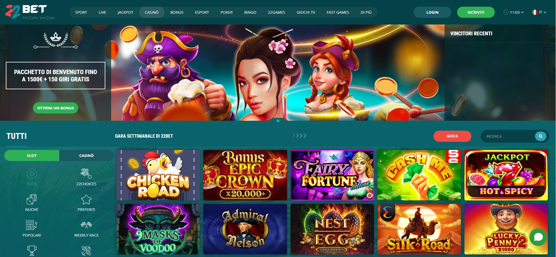 Se vuoi una piattaforma dove scommesse e casinò convivono senza confusione, 22Bet è una buona scelta. L’interfaccia è chiara, si passa da una sezione all’altra senza problemi e l’offerta è davvero ampia.