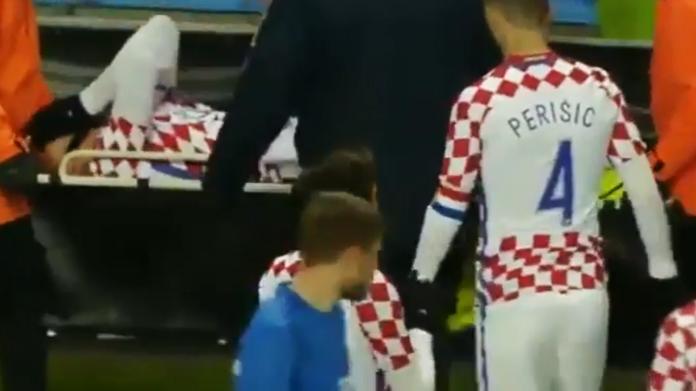 Immagini non adatte ad un pubblico sensibile, brutto infortunio per #Pjaca, esce in parella quasi in lacrime.