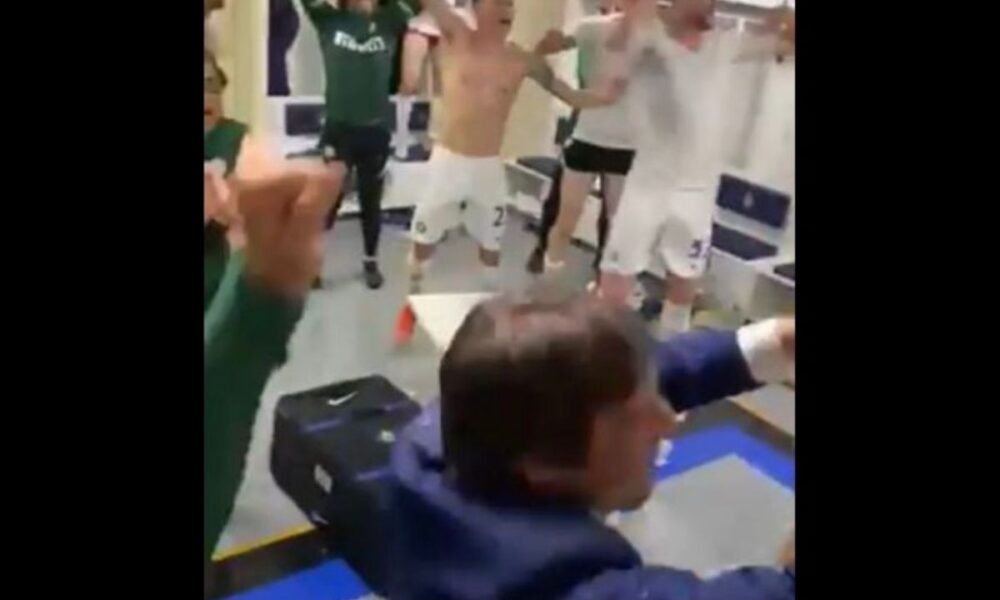 Antonio Conte e i suoi calciatori pazzi di gioia negli spogliatoi per la festa dell’Inter: Scudetto ad un passo – VIDEO