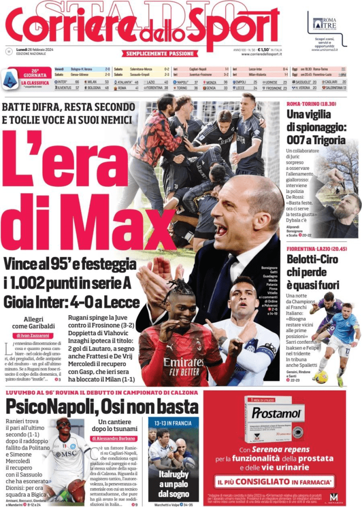Rassegna stampa Juve: prime pagine quotidiani sportivi - 26 febbraio