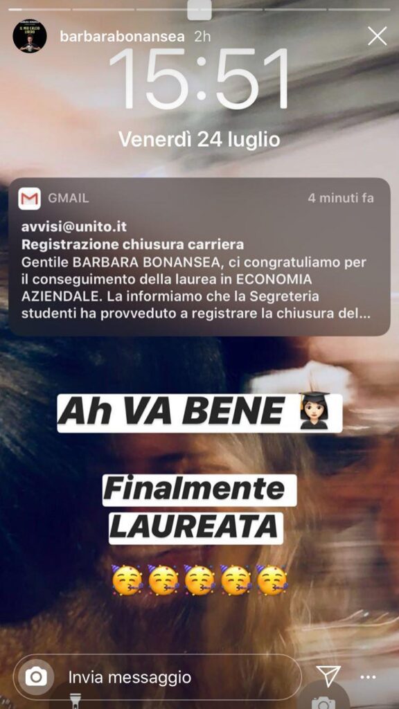 La carriera accademica di Barbara Bonansea si è conclusa oggi nel migliore dei modi. L’attaccante della Juventus Women ha annunciato sui social di aver conseguito la laurea in economia aziendale presso l’Università di Torino.
