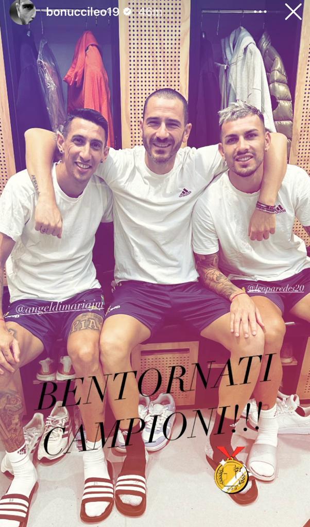Leonardo Bonucci, tramite una storia pubblicata su Instagram, ha dato il ben tornato a Angel Di Maria e Leandro Paredes, rientrati oggi a Torino dopo il Mondiale.