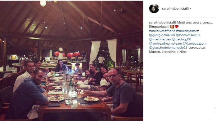 Nostalgia canaglia. E amicizia, tanta amicizia. Perchè dopo sette anni passati a difendere insieme la stessa porta per forza oltre il lavoro c’è qualcosa in più. Per cui, approfittando della sosta invernale Leo Bonucci e Giorgio Chiellini hanno fatto le valigie e son partiti. Insieme, come ai vecchi tempi. Solo che adesso non c’è da difendere nessuna porta, solo bagni, mare e caldo alla Maldive. Da godere con le rispettive famiglie e compagne. Alla combriccola si è aggregato anche un ex juventino: Emanuele Giaccherini. Uno degli eroi dell’ultimo Europeo di Conte, che però al Napoli di Sarri non ha trovato e non sta trovando spazio. Un napoletano, un milanista e uno juventino…sembra quasi una barzelletta. Una semplice cena all’insegna del buon umore e dei bei vecchi ricordi, magari a tinte bianconere. Tutto postato sui social dove Leo è molto attivo, come tutti ben sanno.