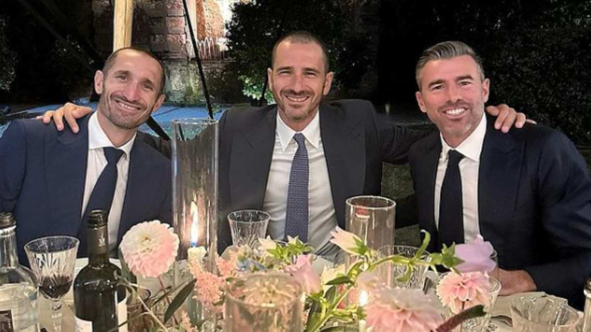 Bonucci SCATENA la nostalgia, FOTO con Chiellini e Barzagli al matrimonio di Buffon: «La difesa è schierata»