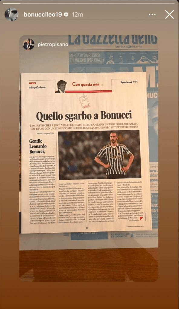L’ex capitano ha infatti condiviso la foto di un articolo di Luigi Garlando sul suo profilo Instagram ufficiale. Una storia con il club bianconero destinata a concludersi nel peggiore dei modi…