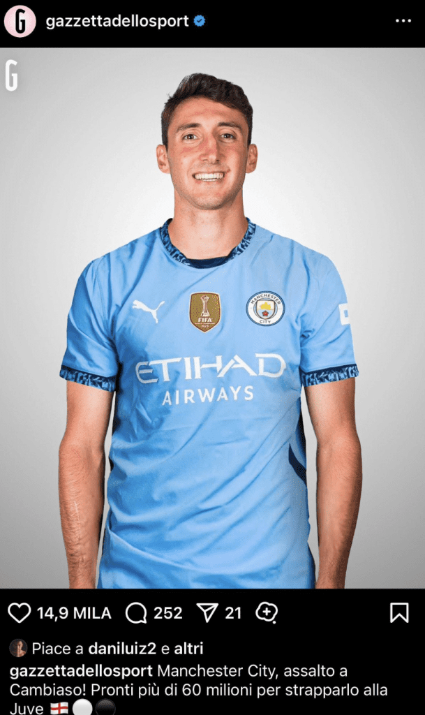 Sui social, la notizia è subito andata virale con i tifosi sorpresi ma soprattutto colpiti dal like di Danilo a un post pubblicato da La Gazzetta dello Sport che ritraeva proprio Cambiaso con la maglia dei Citiziens. Si attendono ulteriori aggiornamenti nelle prossime ore.
