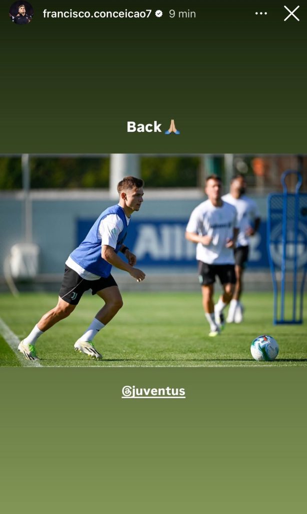 Nel suo profilo Instagram, Conceição ha pubblicato una storia in cui si mostra in azione sul campo, in un’immagine che lo ritrae durante una delle sue giocate più rappresentative. La foto, accompagnata dalla scritta “Back” (tradotto “Tornato”), segna simbolicamente il suo ritorno in bianconero. Inoltre, nel contenuto, Conceicao ha incluso un tag di rimando alla Juventus, a testimoniare il suo legame e il suo entusiasmo per il nuovo capitolo della sua carriera con il club.