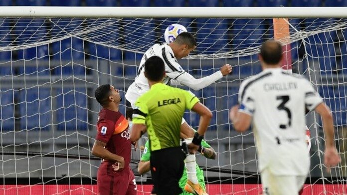 Cristiano Ronaldo è salito in cielo: raggiunta un’altezza mostruosa dal marziano nel gol di testa in Roma-Juve