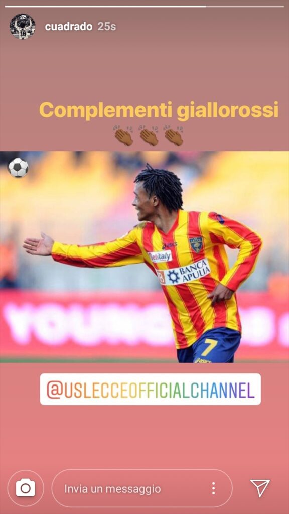 Cuadrado non dimentica le origini che gli hanno permesso di arrivare dove è adesso. Il colombiano, con un passato nel Lecce, ha voluto fare i complimenti alla squadra pugliese per la promozione in Serie A.