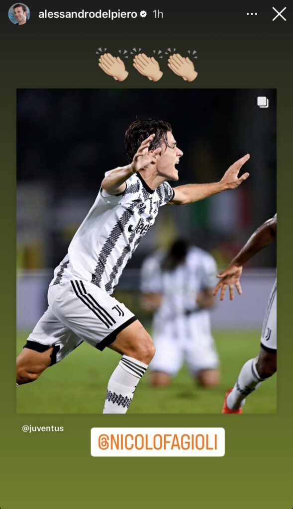 Dopo la sfida di Via del mare sono arrivati i complimenti anche di una delle leggende della Juventus: si tratta di Alessandro Del Piero, che su Instagram ha pubblicato una storia con gli applausi rivolti a Fagioli.