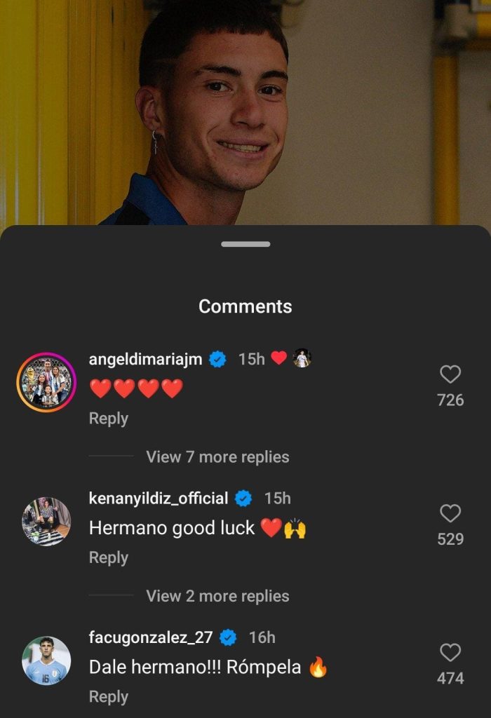 Il Fideo ex Juve ha commentato con una serie di cuoricini rossi il primo post pubblicato su Instagram dal giovane Matias da nuovo giocatore del Frosinone. Di Maria e Soulé sono stati compagni di squadra in bianconero nella passata stagione.