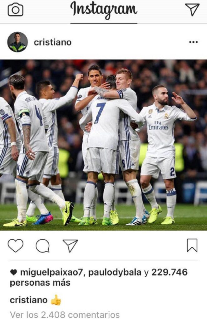 L’argentino su Instagram ha messo mi piace alla foto postata da Cristiano Ronaldo dopo la vittoria di ieri del Real sul Napoli. Indizio di calciomercato?