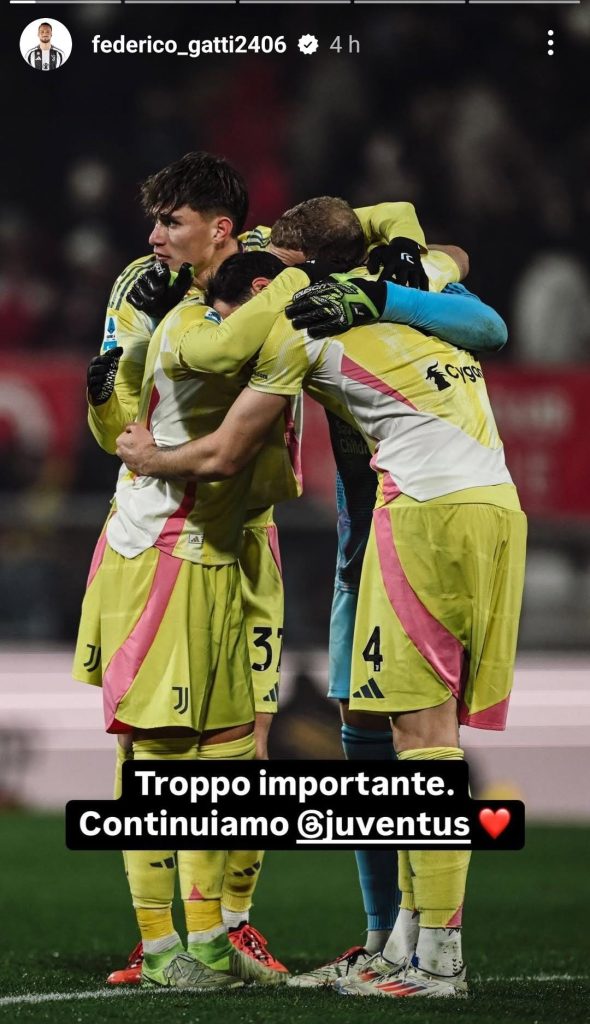 Intervenuto sul proprio profilo Instagram dopo il match dell’U-Power Stadium, Federico Gatti ha mandato un messaggio ai tifosi bianconeri: «Troppo importante, continuiamo Juventus» ha scritto.