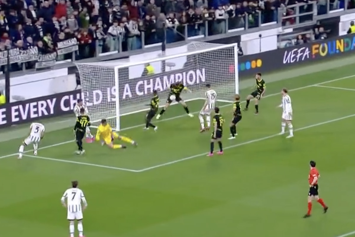 Juve avanti grazie alla zampata del centrale, abilissimo a infilare in porta un pallone vagante dopo il colpo di testa di Vlahovic salvato sulla linea da un calciatore avversario.