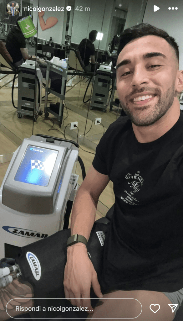 Recupero quasi completo per Nico Gonzalez! L’esterno bianconero sta lavorando ancora, come si può vedere da una foto pubblicata su Instagram, per ritornare il prima possibile dall’infortunio nel match contro il Lipsia.