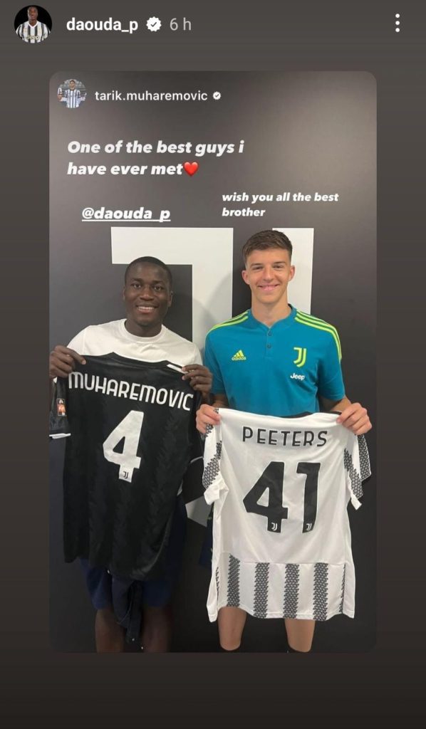 Daouda Peeters è pronto a lasciare la Juventus Next Gen la prossima estate. Il centrocampista classe ’99 partirà nuovamente in prestito, alla ricerca di minutaggio e condizione in vista della prossima stagione. Alcuni suoi compagni di squadra, come Muharemovic e Huijsen, hanno voluto già salutarlo con alcune Instagram stories.