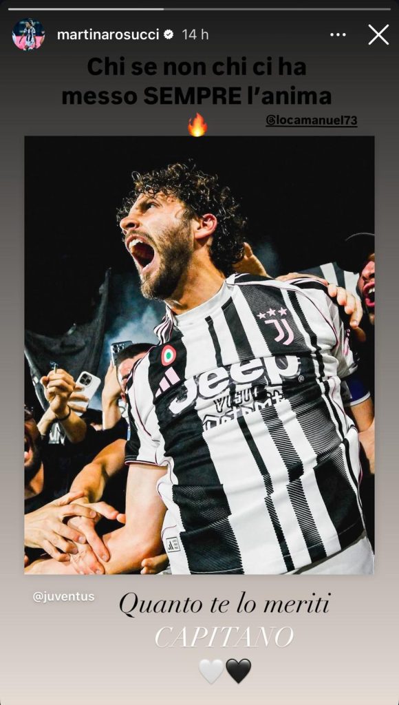 Un messaggio chiaro quello della capitana della Juventus Women indirizzato al capitano della Juventus, Manuel Locatelli. Martina Rosucci ha pubblicato una foto sul proprio profilo Instagram in cui si complimentava con il centrocampista bianconero, protagonista indiscusso della sfida contro il Venezia. Locatelli ha, infatti, preso la responsabilità di calciare il rigore che ha mandato la Juve in Champions League.