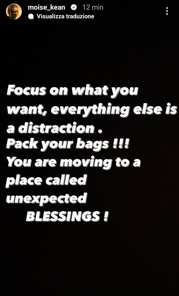 Moise Kean scalda i motori in vista della ripresa della stagione. Attraverso il suo profilo Instagram, l’attaccante ha scritto questo messaggio motivazionale.