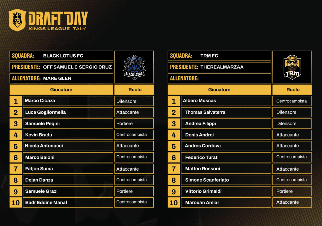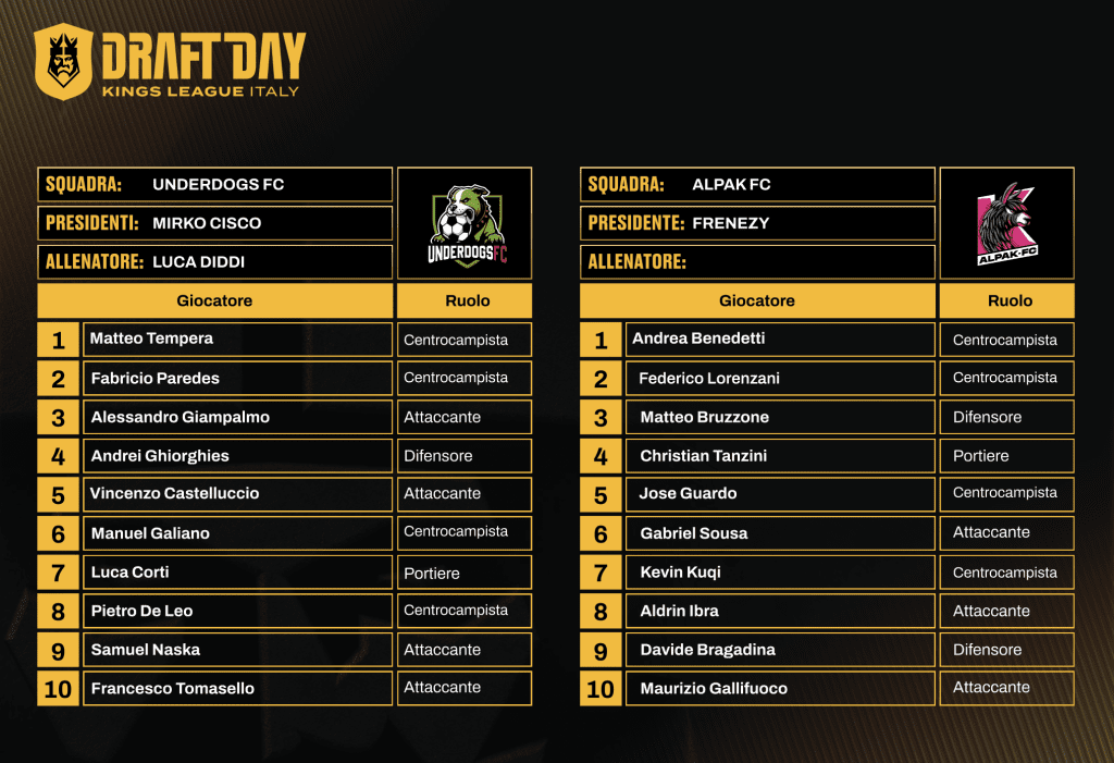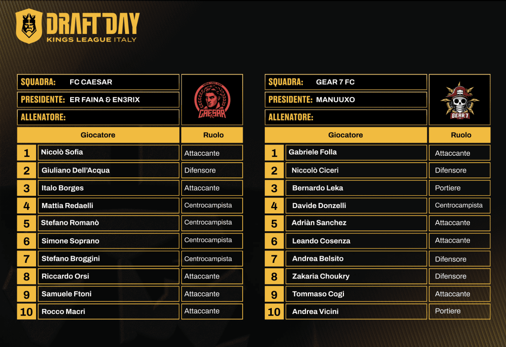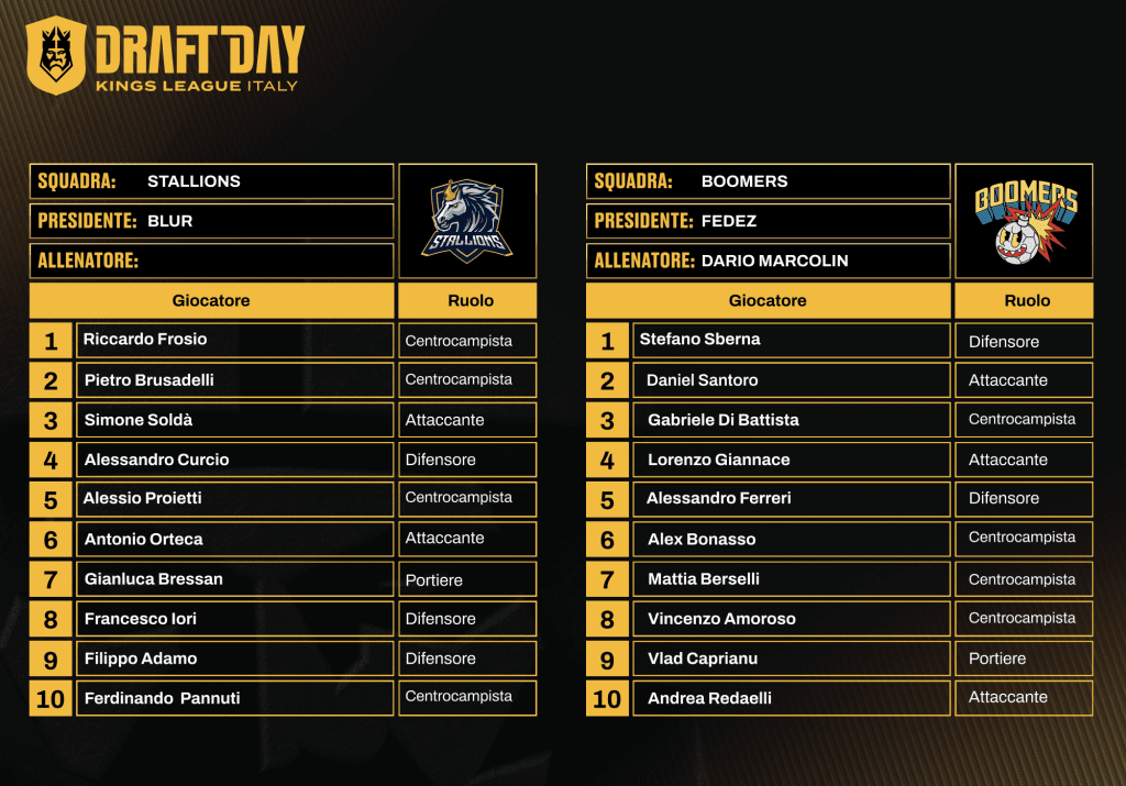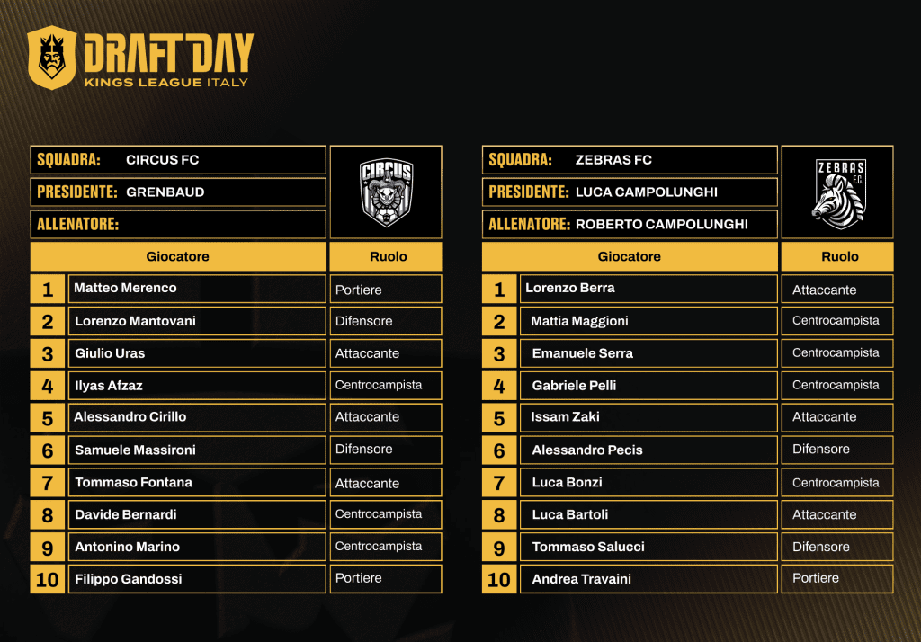 Kings League Italia, ufficiali le rose delle 12 squadre: il verdetto del draft