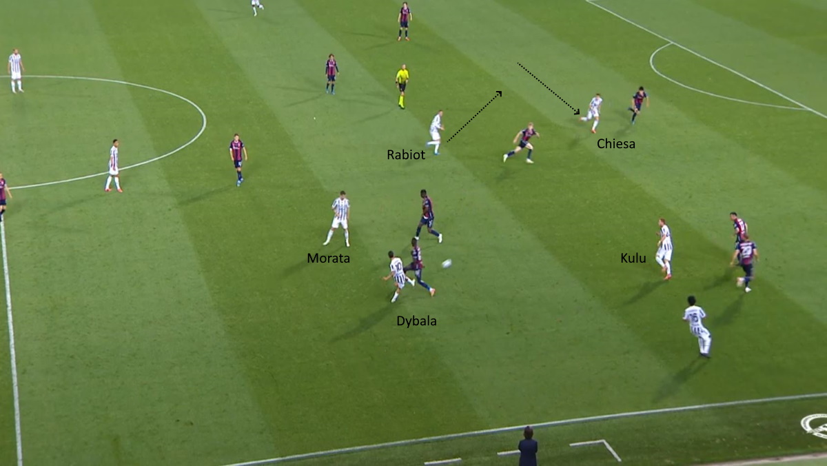 La Juve ha creato tantissimo contro il Bologna, soprattutto grazie a Dybala e Chiesa. La squadra faceva molta densità sul lato destro