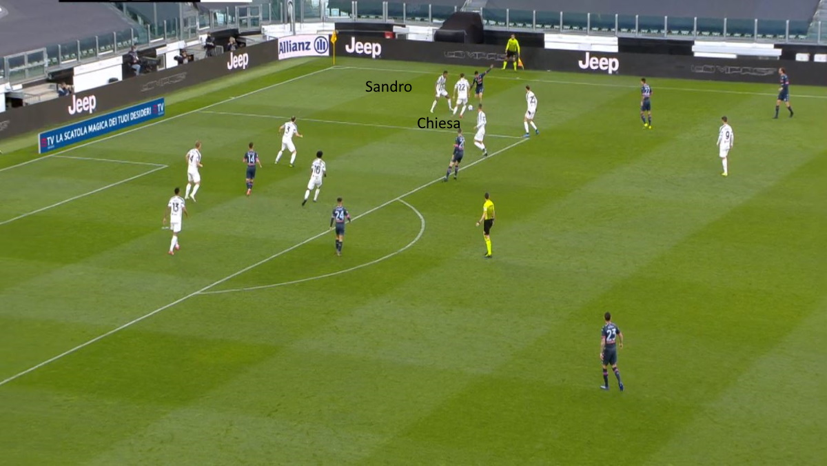 Un esempio qui, in cui Rabiot sbuca alle spalle di Demme (che non lo segue), raccogliendo il filtrante di Alex Sandro. La Juve può così attaccare in campo aperto un Napoli lungo e con un baricentro piuttosto alto. Sia lui che Bentancur si sono mossi tanto e bene, sganciandosi spesso in avanti con smarcamenti che prendevano in controtempo le maglie rivali.