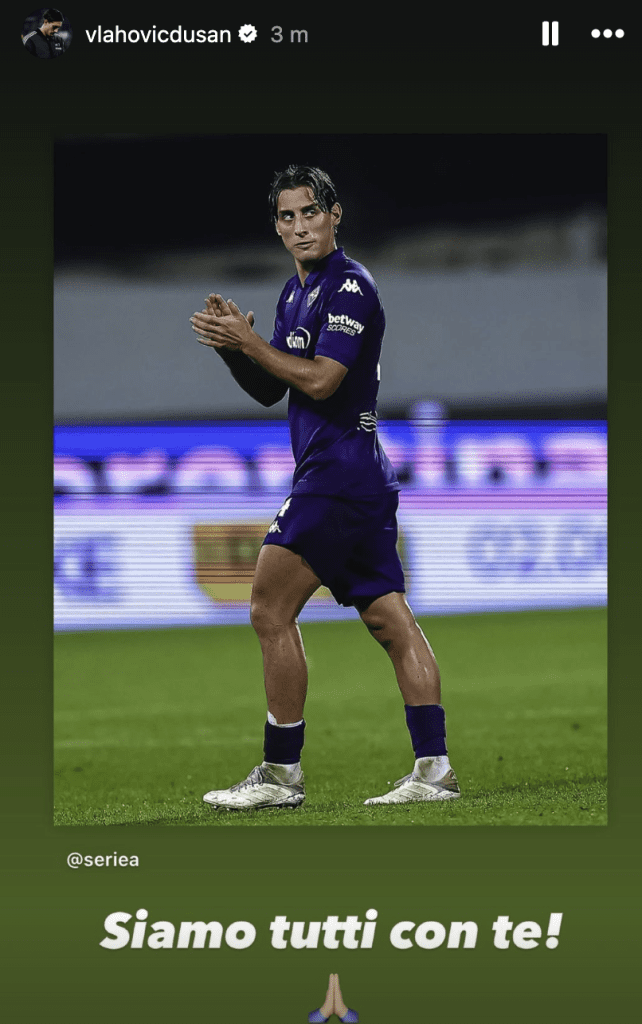 Tra questi c’è quello del numero 9 della Juve Dusan Vlahovic, che tramite i propri canali social ufficiali ha dedicato un dolce pensiero al calciatore: «Siamo tutti con te».
