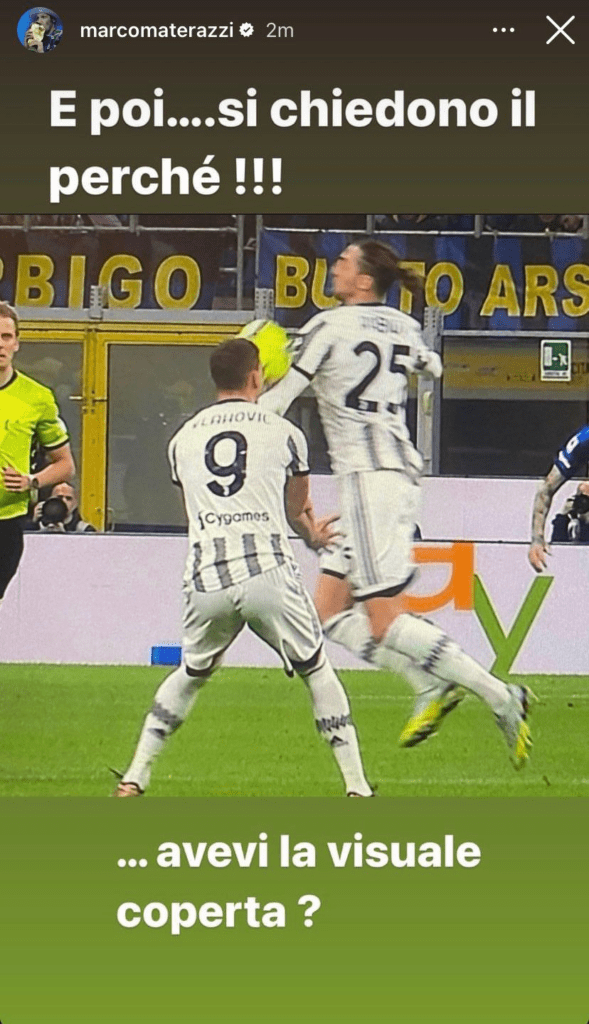 C’è anche Marco Materazzi a protestare per il gol di Kostic e per il presunto tocco di mano di Rabiot: il suo messaggio