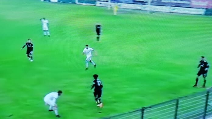 40′ Di Pardo chiede un rigore – Contatto tra Di Pardo e un difensore avversario in area di rigore: il giocatore bianconero chiede un rigore ma viene ammonito