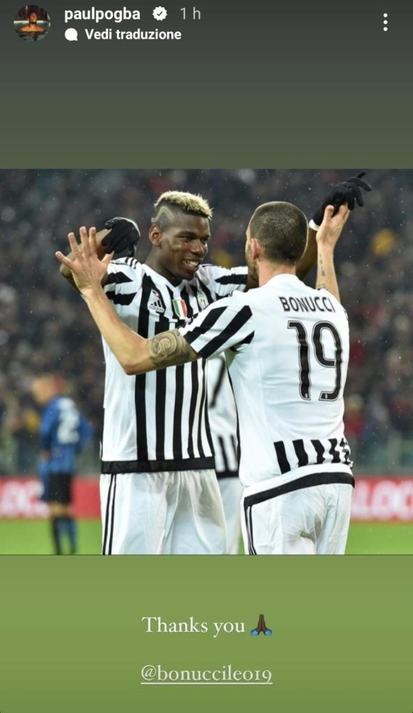 Attraverso le sue Instagram stories, Paul Pogba ha voluto salutare Leonardo Bonucci, che ha lasciato la Juventus ed è diventato un nuovo giocatore dell’Union Berlino.