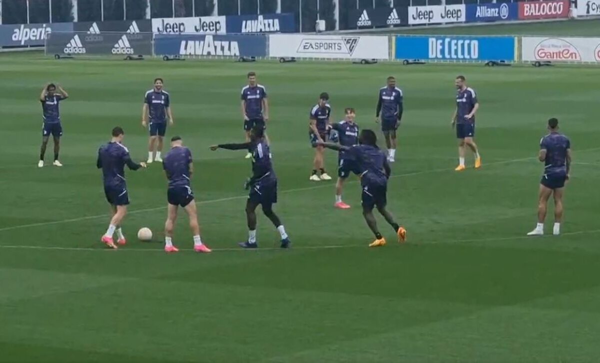 Pogba tenta il tunnel a Kostic: la reazione durante il torello nell’allenamento della Juve è tutta da ridere – VIDEO