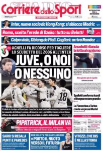 Juve, o noi o nessuno. Agnelli fa ricorso per togliere lo scudetto del 2006 all’Inter. Il club si rivolge al Coni per riaprire la sua battaglia contro i nerazzurri. La squadra di Allegri passa a Bologna con i gol di Bernardeschi e Kean, offeso da ululati razzisti. Oggi a Londra le visite di Ramsey (Corriere dello Sport).