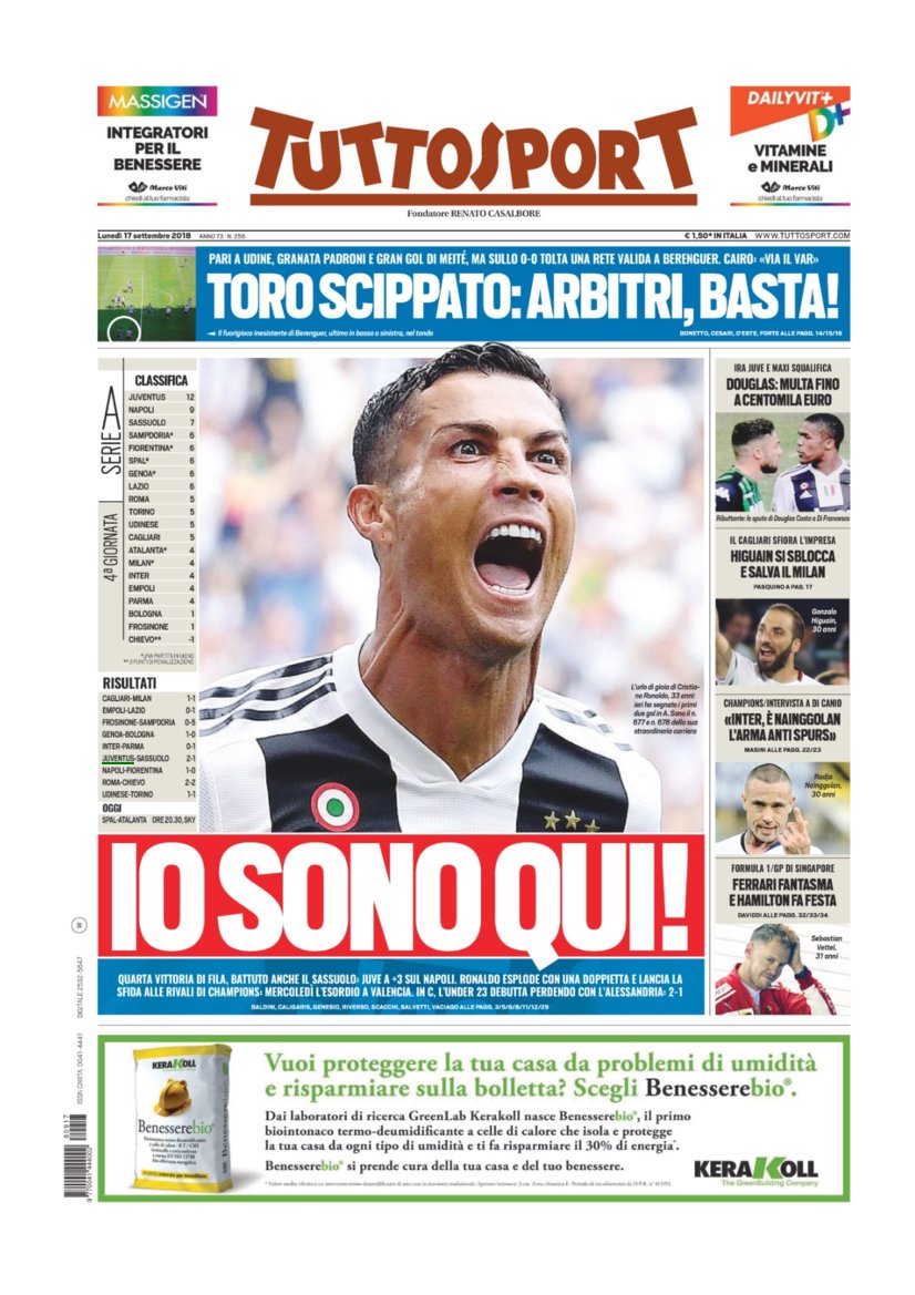 Rassegna Bianconera di lunedì 17 settembre 2018