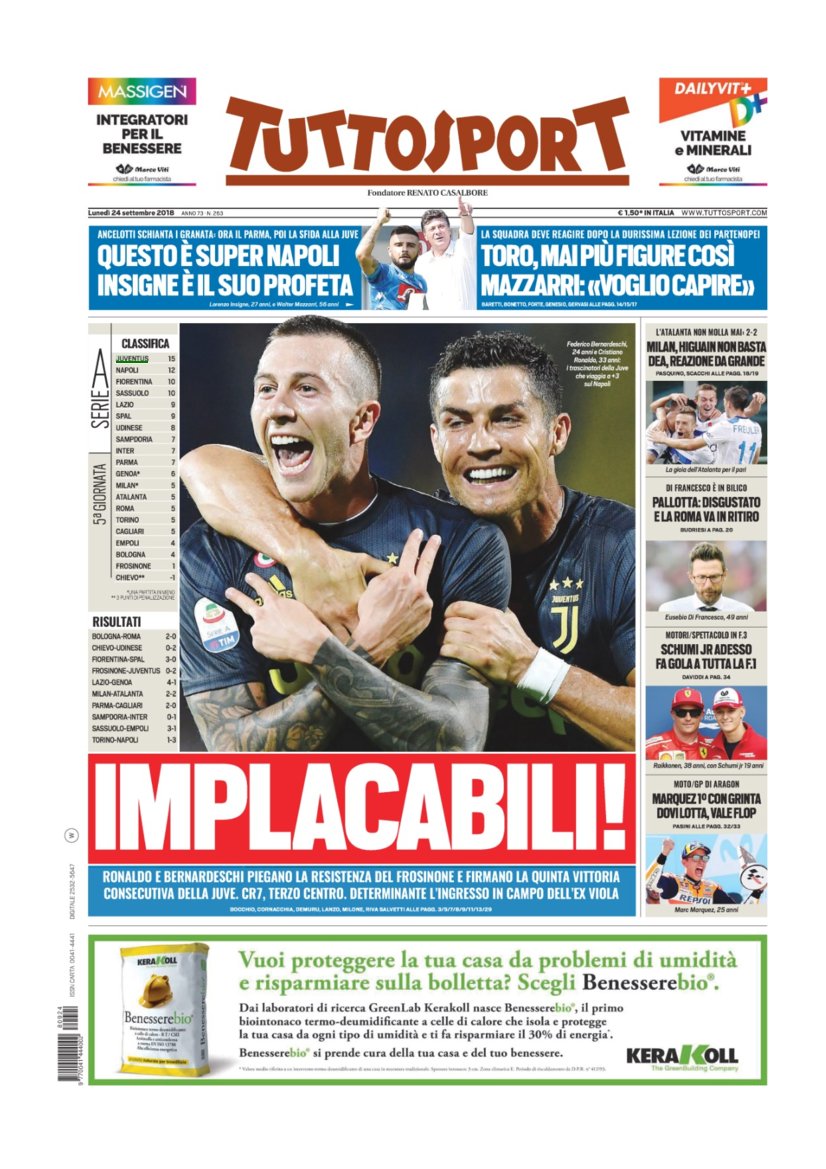 Rassegna Bianconera di lunedì 24 settembre 2018