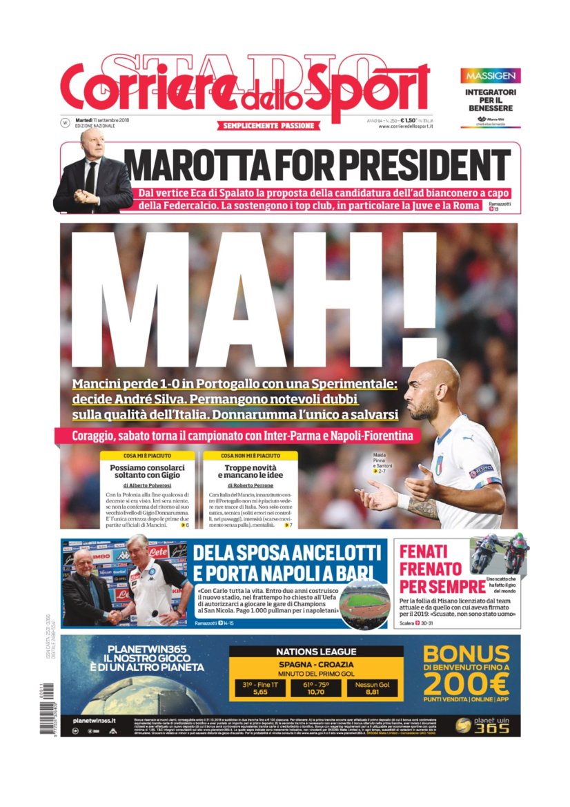 Rassegna Bianconera. L’Italia cade in Portogallo. Oggi in casa Juve la ripresa degli allenamenti. Domenica c’è il Sassuolo. E Marotta pensa alla presidenza della Federcalcio