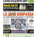 Juve al comando e chance di fuga – Una rimonta costruita step by step ma non è affatto finita. Alle 16,55 di ieri la Juve ha ripreso il suo posto da sola in testa alla classifica di serie A e alle 22,45 l’ha blindato. Otto giorni per rimettere mano sul primato. Rispetto a sabato scorso, ora la Juventus può anche perdere lo scontro diretto, per vincere lo scudetto le basterà vincere tutte le altre. (Alberto Polverosi – Corriere dello Sport)