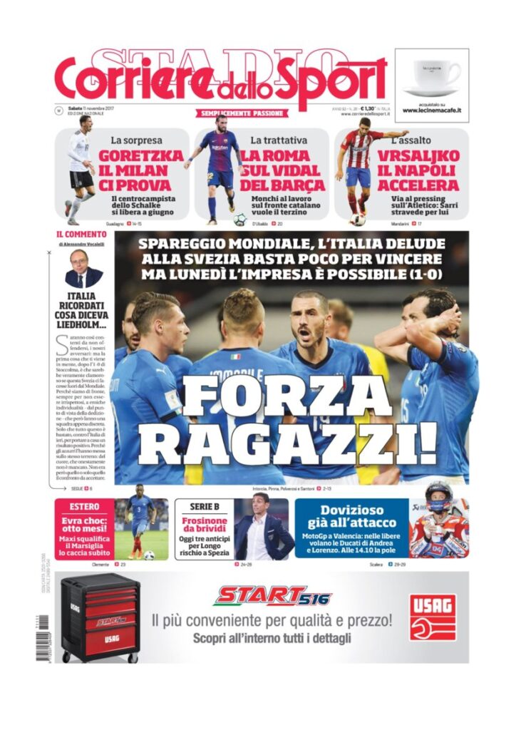 Una brutta Italia torna sconfitta dalla Svezia e si giocherà il mondiale nella gara di San Siro di lunedì. Un autogol e un palo riassumono 90 minuti di poca concretezza azzurra