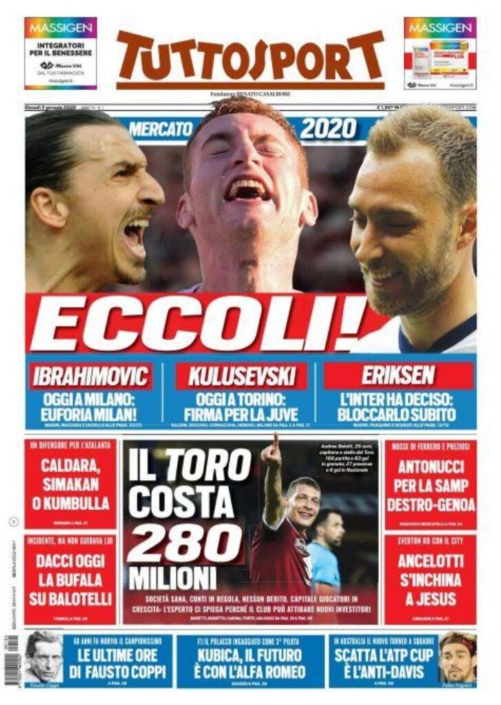 Rassegna stampa Juve: le prime pagine dei quotidiani sportivi – 2 gennaio 2020