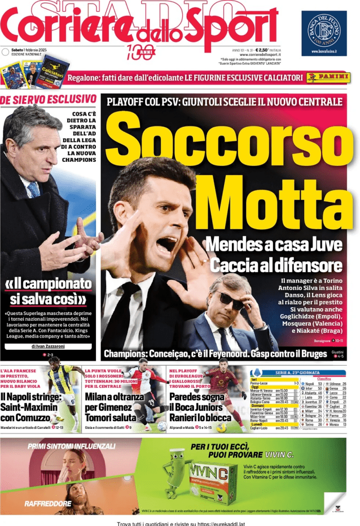 Rassegna stampa Juve: prime pagine quotidiani - 1 febbraio