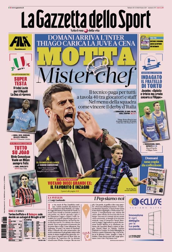 Le prime pagine di alcuni dei principali quotidiani sportivi internazionali in edicola sabato 15 febbraio: in particolare risalto anche la Juve e la Serie A.