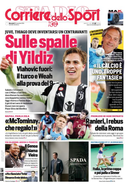 Rassegna stampa Juve: prime pagine quotidiani sportivi – 20 novembre
