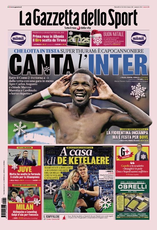 Rassegna stampa Juve: ecco le prime pagine dei principali quotidiani sportivi internazionali di martedì 24 dicembre 2024