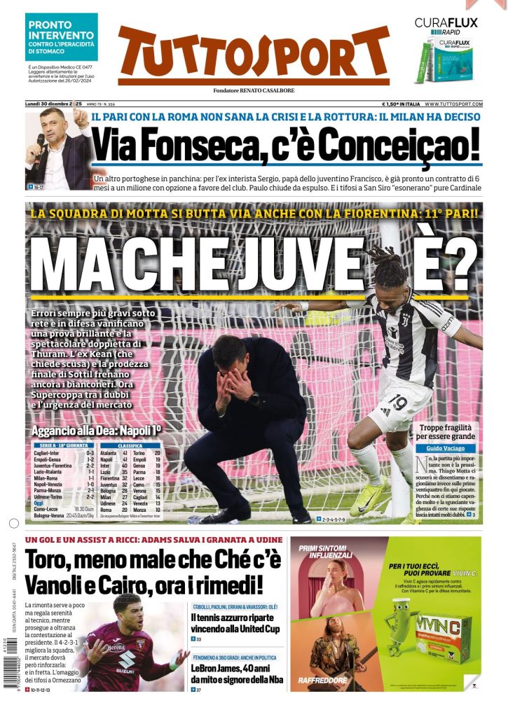 Rassegna stampa Juve: ecco le prime pagine dei principali quotidiani sportivi internazionali di lunedì 30 dicembre 2024