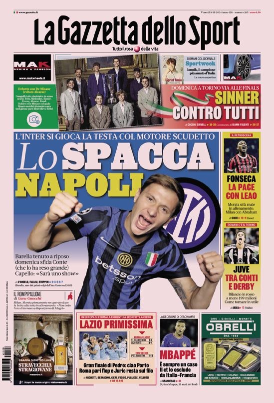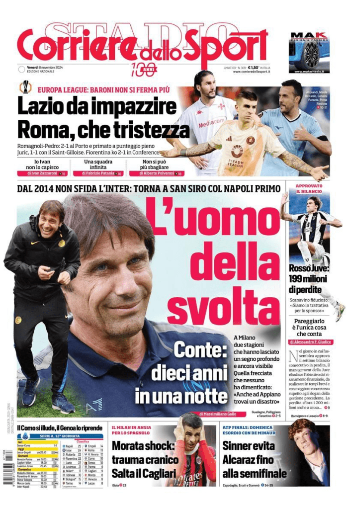 Le prime pagine di alcuni dei principali quotidiani sportivi internazionali in edicola venerdì 8 novembre 2024: in particolare risalto anche la Juve e la Serie A.