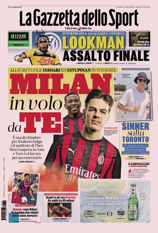 Le prime pagine di alcuni dei principali quotidiani sportivi internazionali in edicola lunedì 21 luglio 2025: in particolare risalto anche la Juve e la Serie A.