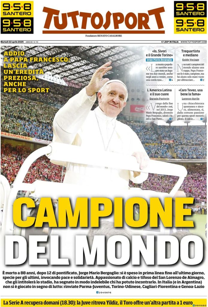 Le prime pagine di alcuni dei principali quotidiani sportivi internazionali in edicola martedì 22 aprile: in particolare risalto anche la Juve e la Serie A.