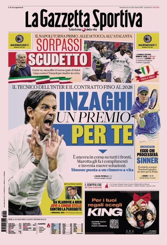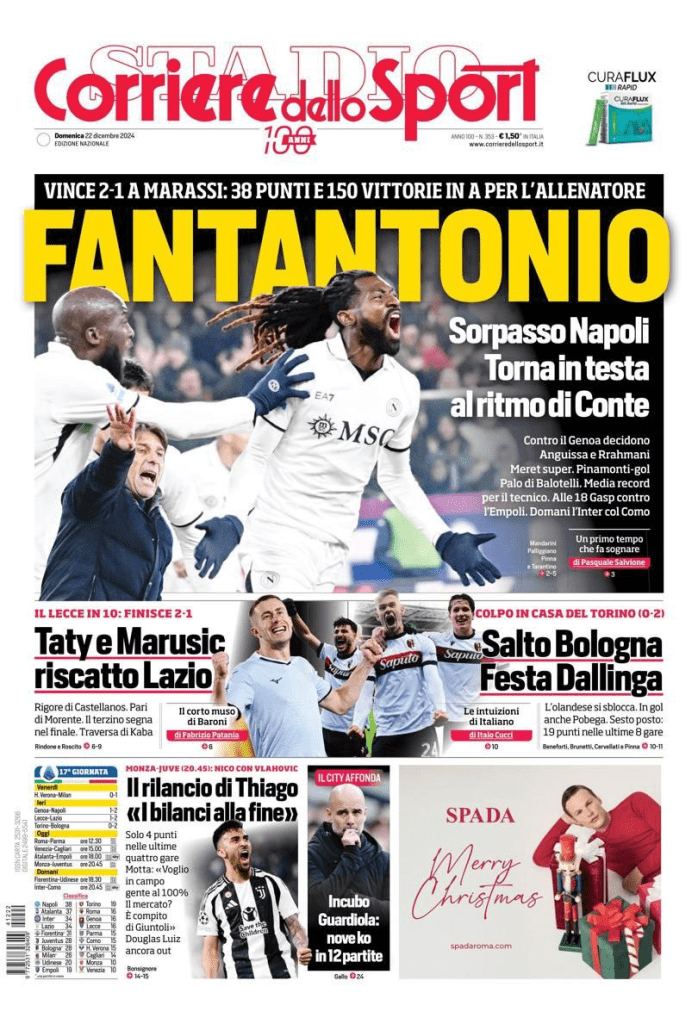 Le prime pagine di alcuni dei principali quotidiani sportivi internazionali in edicola domenica 22 dicembre 2024: in particolare risalto anche la Juve e l’inizio della diciassettesima giornata di Serie A.