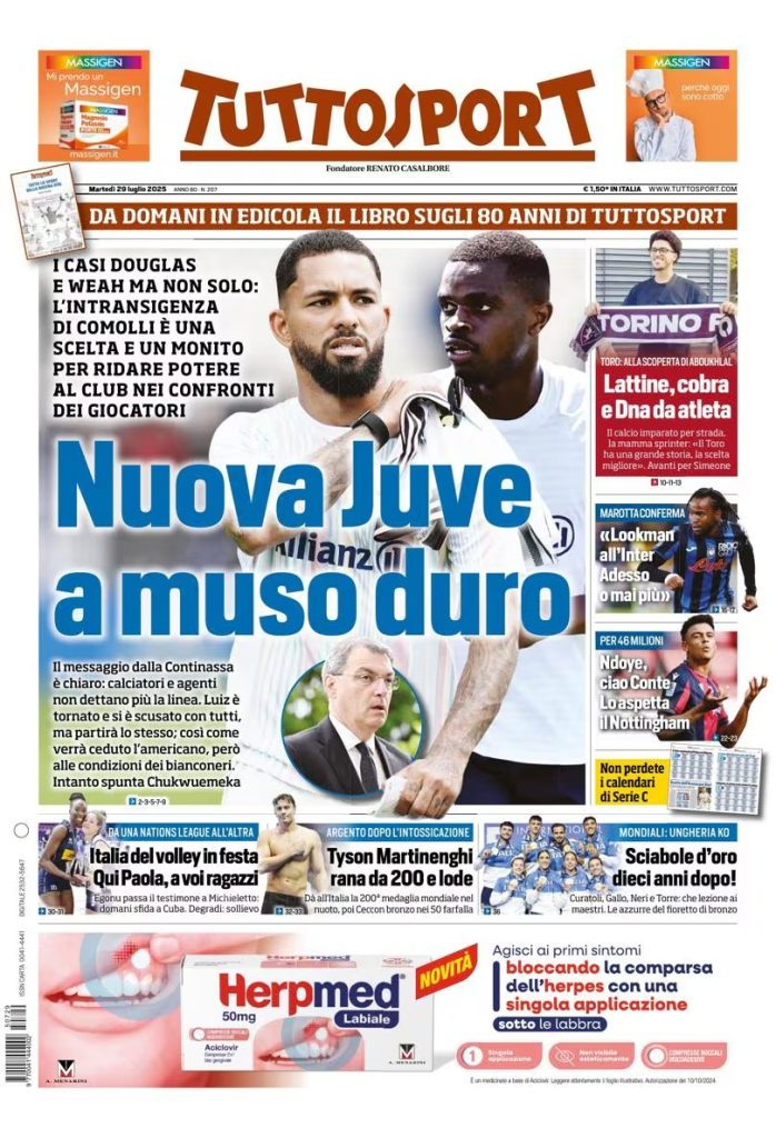 Rassegna stampa Juve: ecco le prime pagine dei principali quotidiani sportivi nazionali di oggi, martedì 29 luglio 2025