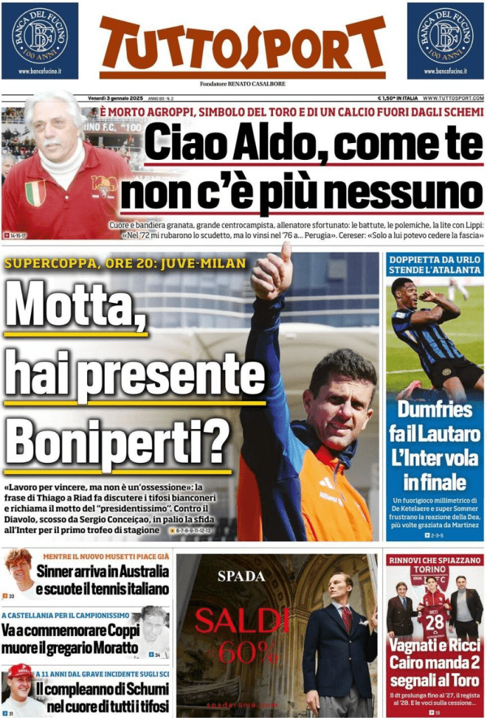 Le prime pagine di alcuni dei principali quotidiani sportivi internazionali in edicola venerdì 3 gennaio 2025: in particolare risalto anche la Juve e la Supercoppa Italiana.
