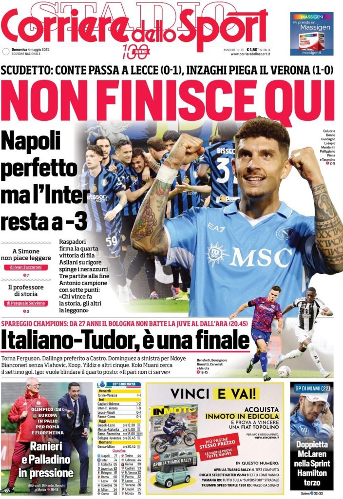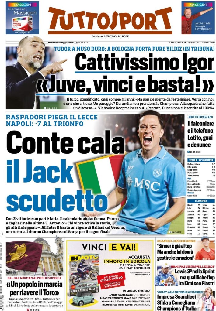 Rassegna stampa Juve: ecco le prime pagine dei principali quotidiani sportivi nazionali di oggi, domenica 4 maggio 2025