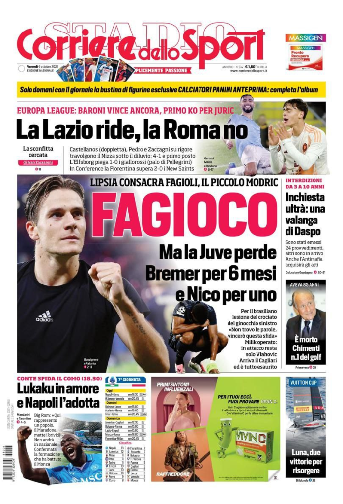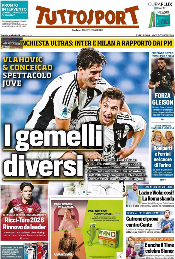 Rassegna stampa Juve: ecco le prime pagine dei principali quotidiani sportivi internazionali di venerdì 4 ottobre 2024